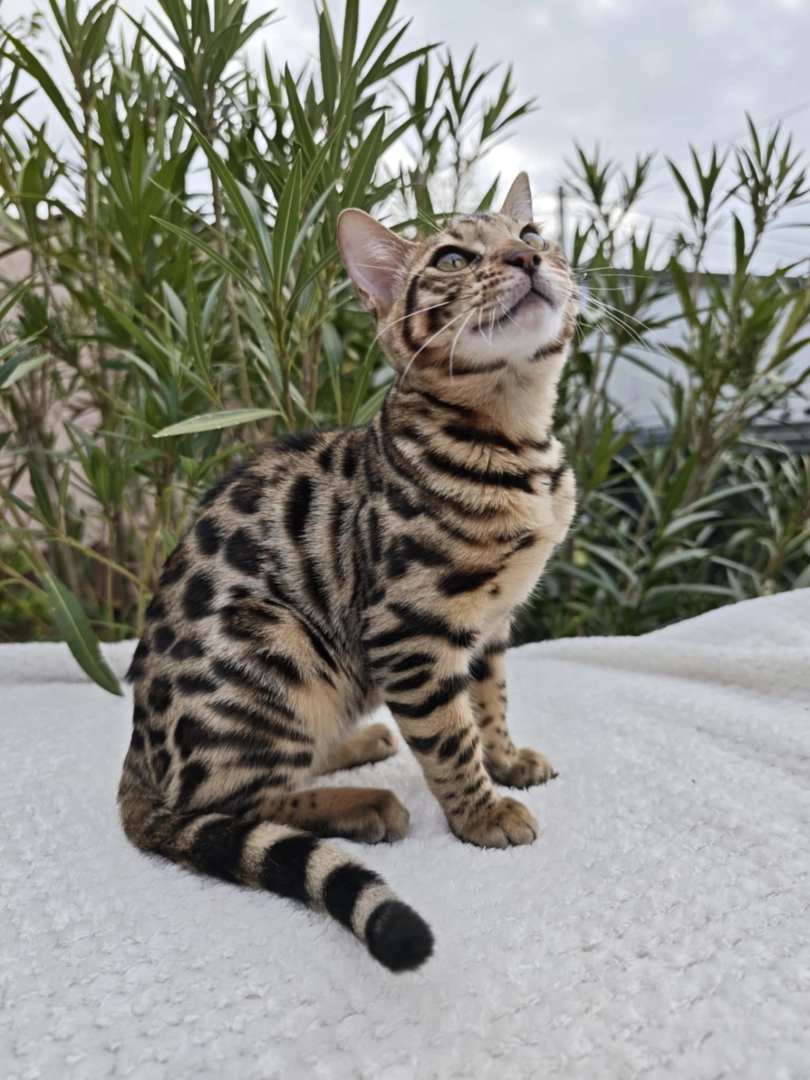Frankie egy igazi kis csoda: a barna rozettás bundája alatt egy szeretetteljes, doromboló kis lélek rejtőzik. Olyan odaadással képes bújni és ragaszkodni, hogy mindenki szívébe azonnal belopja magát.